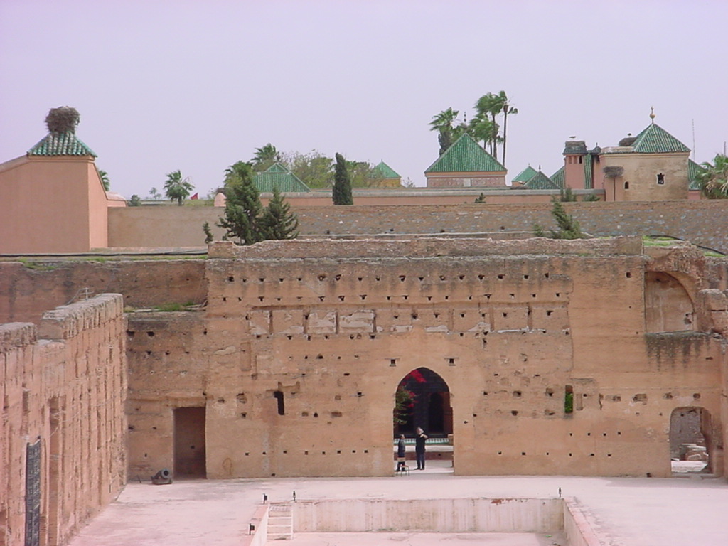 Looking towards one of the south entrance gates of El Badi Palace, across a dry pool.