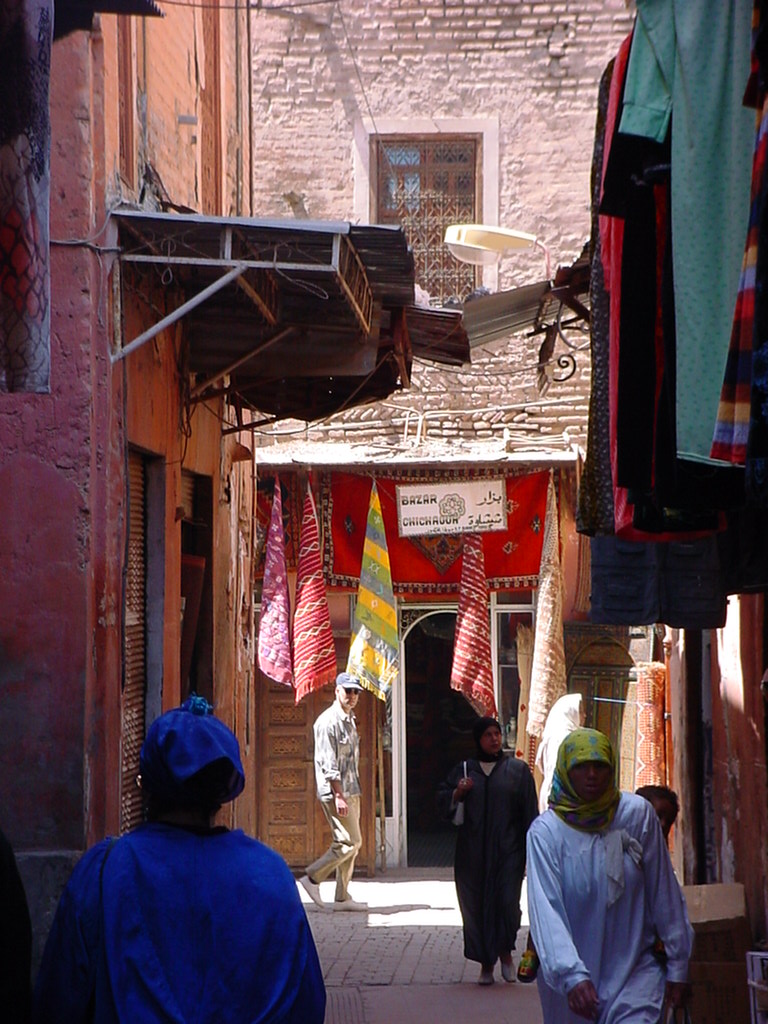 We spent two nights in Marrakech as part of our tour by train around Morocco in early 2003, which although it was before the European budget airlines had arrived, the medina had already been well touristified and was much tidier and more orderly than the medieval chaos of Fes. We enjoyed getting lost among the market stalls and haggling in French over pennies, and also caught the fall of the statue of Saddam on Al Jazeera while sitting in a café. At some point during our time in the city, the local diet caught up with us and the remainder of the trip was directed by the ready availability of flushing facilities.
