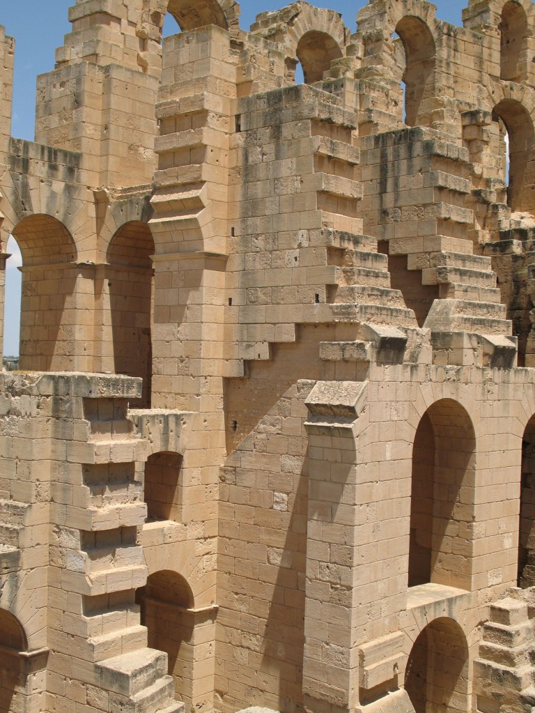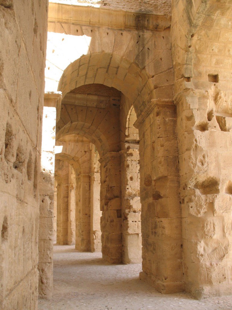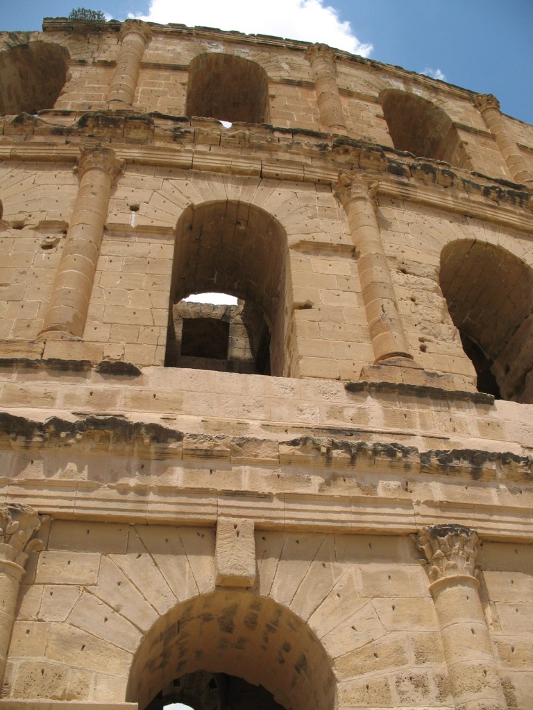 Easily reached by train, I paid a visit to El Jem for just a few hours one afternoon, enroute to Sfax. It was no problem to buy a ticket for the next train out when I arrived at the station, and then only a short walk to the amphitheatre which wasn’t hard to find, given that it’s by far the largest building in town.