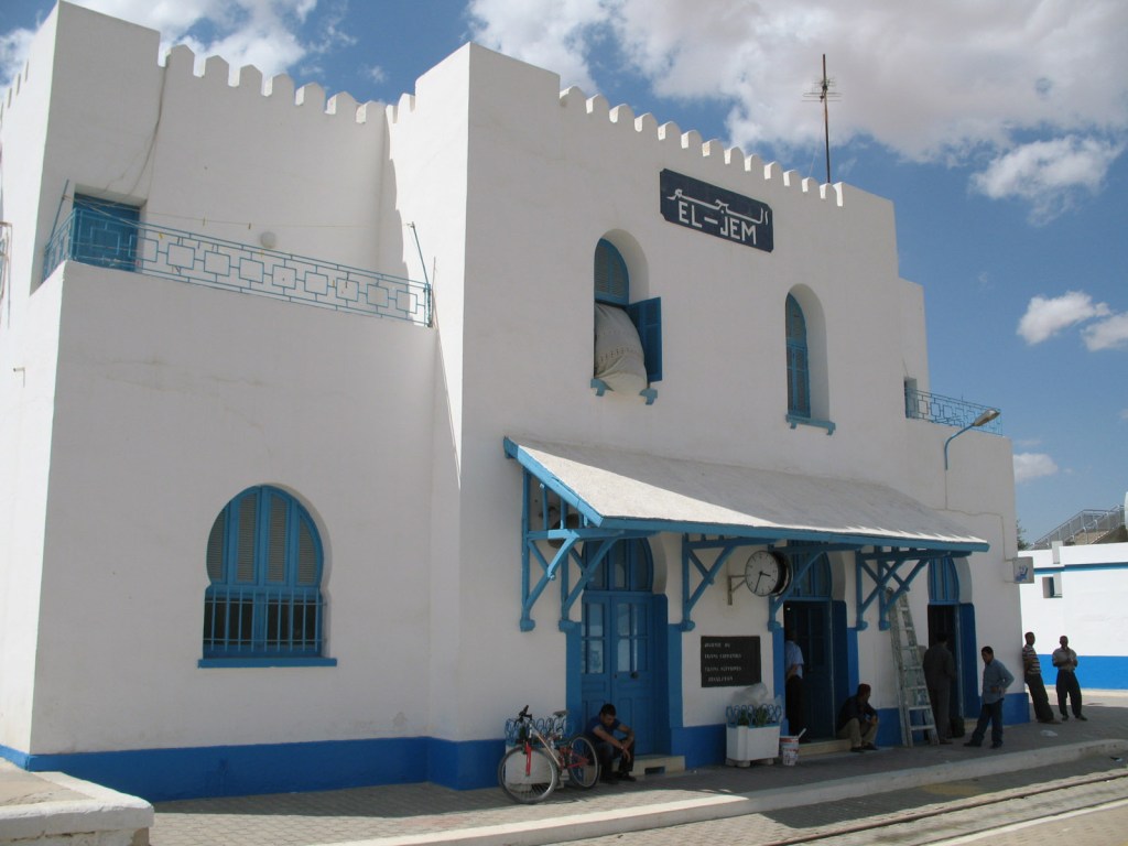 El Jem station, a not altogether unpleasant place to hang out while waiting for the next train south, and onwards to Sfax.