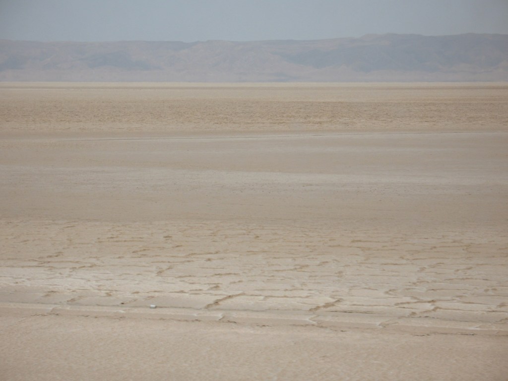 Chott el Djerid is a large salt flat which occupies a sizeable portion of southern Tunisia. It is usually devoid of water except in winter, and today was no exception, but had there been a flash flood we would have been protected by the road being on top of an embankment.