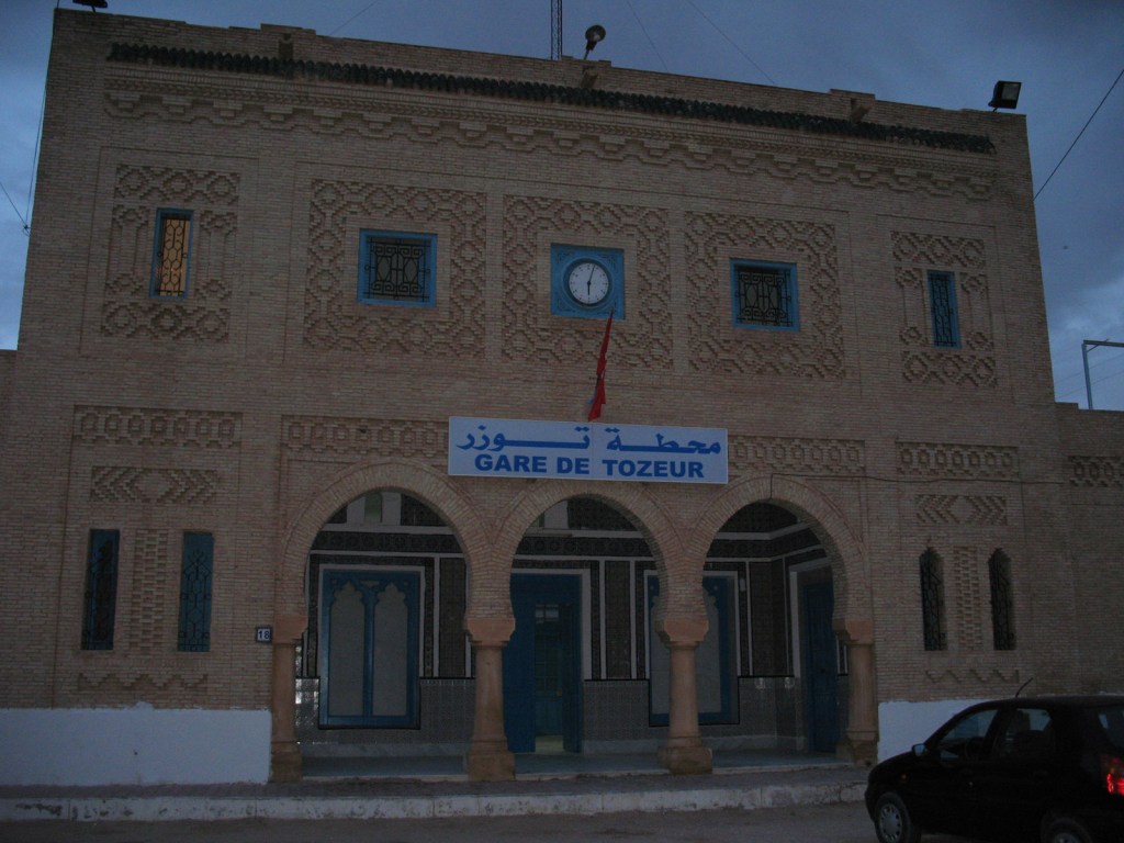 I figured Tozeur would be a good point to finish off my trip into deepest desert Tunisia, so I crossed the Chott el Djerid salt lake from Douz by louage, changing at Kebili on the way. I spent an afternoon and a night in town, then it was about 9 hours by train straight back into Tunis the following day. My lodgings were whatever was cheap and convenient upon my arrival, unfortunately I don’t remember the name. There were several large tourist hotels at the west side of town, but my time was short and I wouldn’t have got the value out of them.