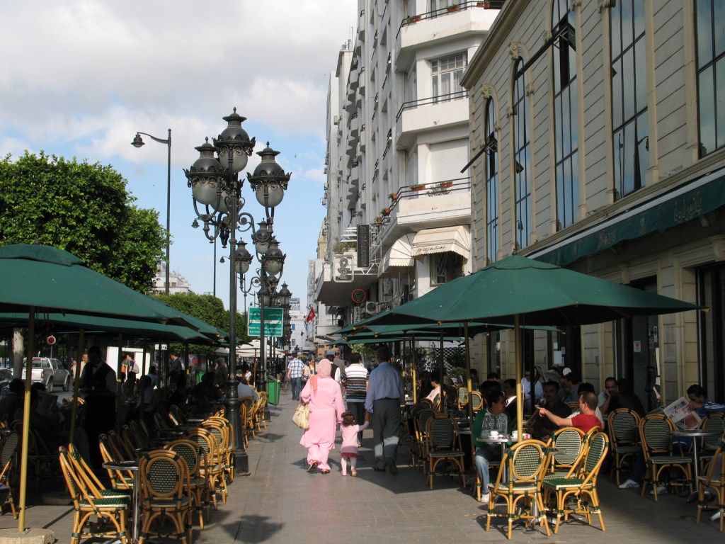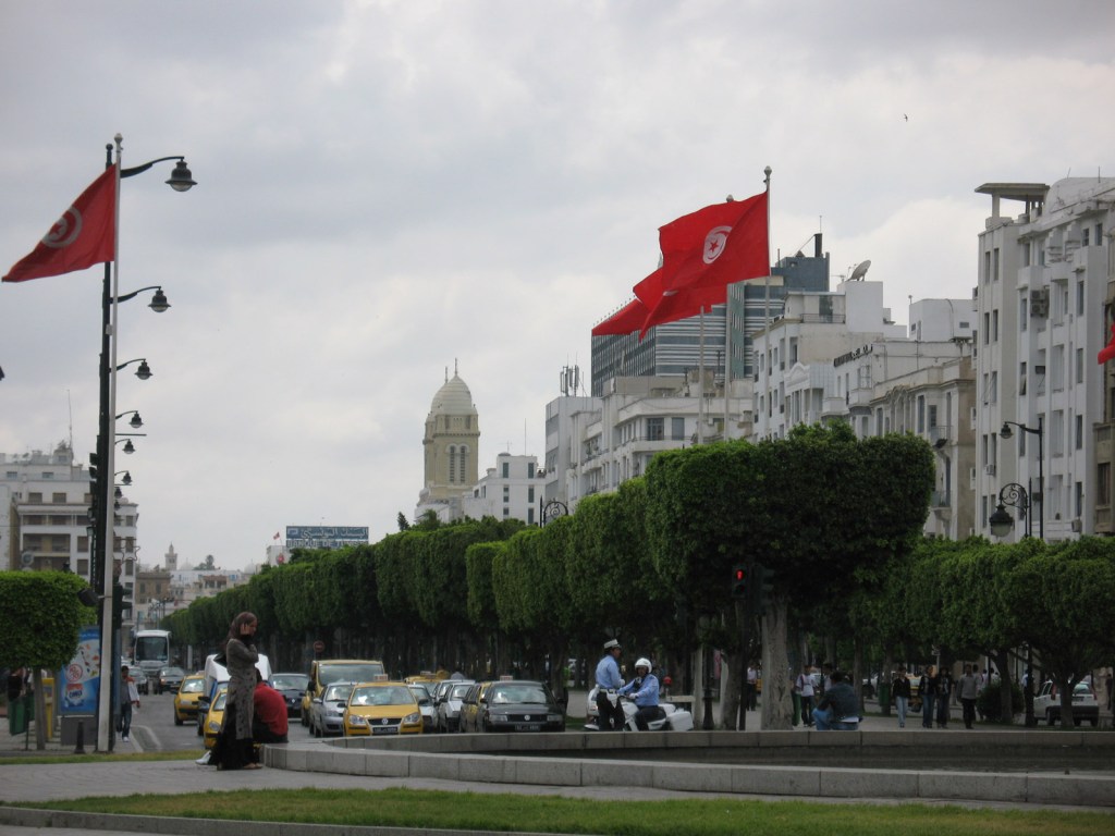 Looking west back along Avenue Habib Bourguiba, the centrepiece boulevard of Tunis.
