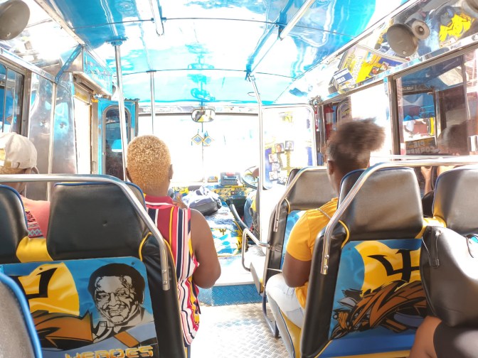 Onboard one of the famous Reggae buses, a flat fare to anywhere on the island and accompanying blasting reggae music with thumping bass. Reggae buses are also one of the fastest ways to get around, barely stopping to let you on or off and zooming to their destination at top speed. This one features National Heroes as interior décor.