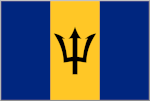 A British red telephone box, repainted in the Bajan national colours, and I think without the glass panes for improved ventilation.