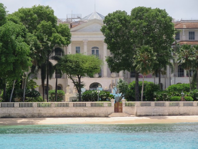 Bamford’s mansion has a very grand portico facing the beach, along which all and sundry are free to amble along and peer in. There are no private beaches in Barbados.