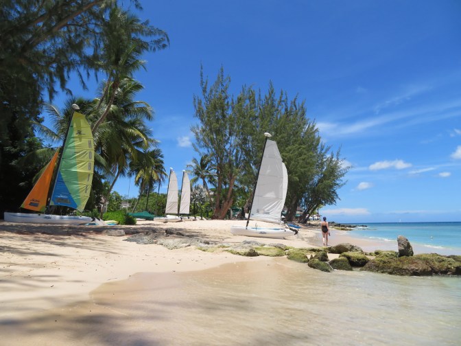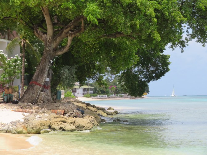 A final view of the beautiful sparkling Atlantic of Barbados’s Platinum Coast. We saw turtles every time we swam, also rays and eels among the reef, and there were sand dollars to pick up from the sandy sea bottom only about ten feet down.