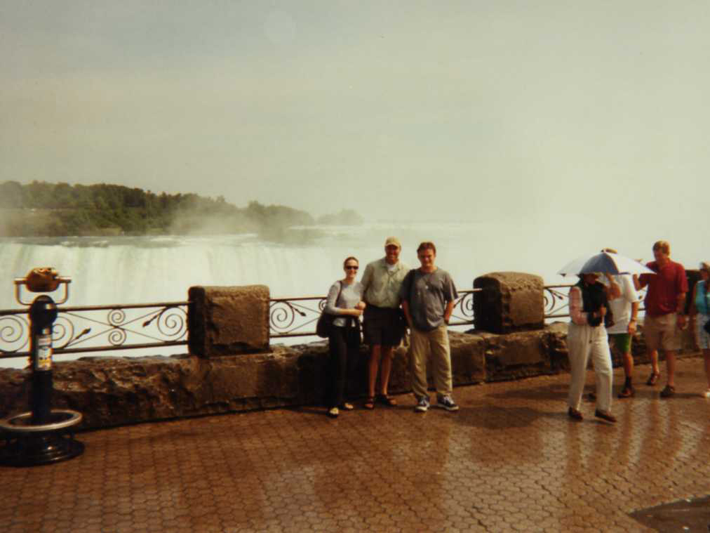 Typical tourist shot of myself and my travelling companions on arrival at the Horseshoe or Canadian Falls. We got very quickly drenched.