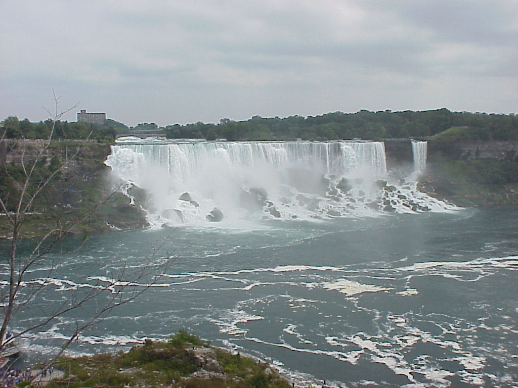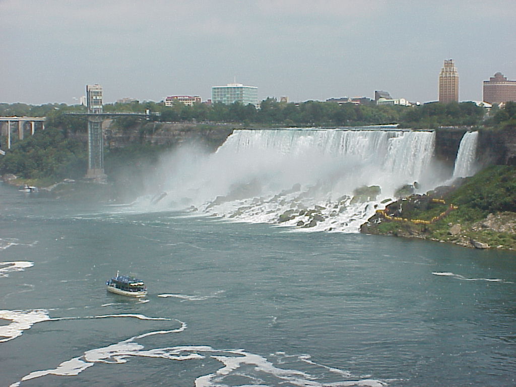 Closer view of the American Falls, with Bridal Veil the separate small section on the right. What appears to be a broken bridge on the left is Prospect Point Observation Tower, which as well as providing better views from the American side, is the departure point of the Maid of the Mist.