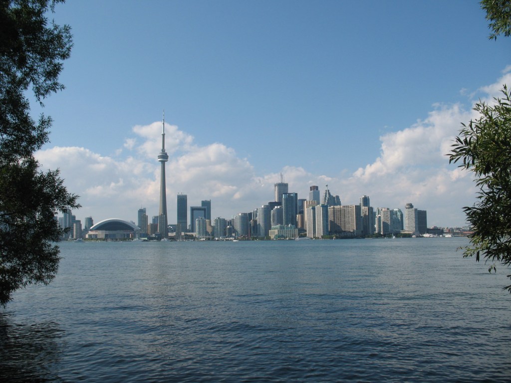 The skyline of Toronto as seen from Toronto Island Park on a beautiful July day. This was my second visit, in 2010, and I took the ferry out to the islands specifically looking for a shot like this. On the left is the graceful CN Tower.