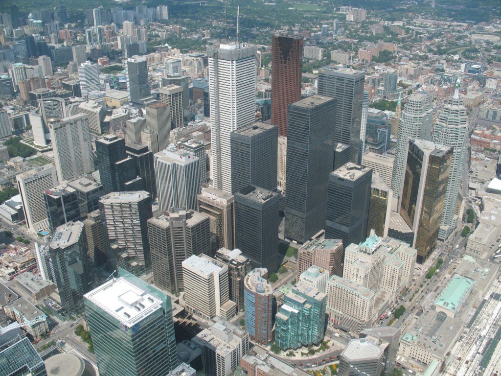 Downtown Toronto as seen from the Skypod of the CN Tower at 447 metres. This was once the highest observation deck in the world, but was surpassed in observation deck height in 2008 by the Shanghai World Financial Centre. Our host was having none of that, but I didn’t bother trying to argue, they have to sell tickets after all. Skyscraper nerds will note the re-cladding of First Canadian Place (the white tower in the centre) had just begun.