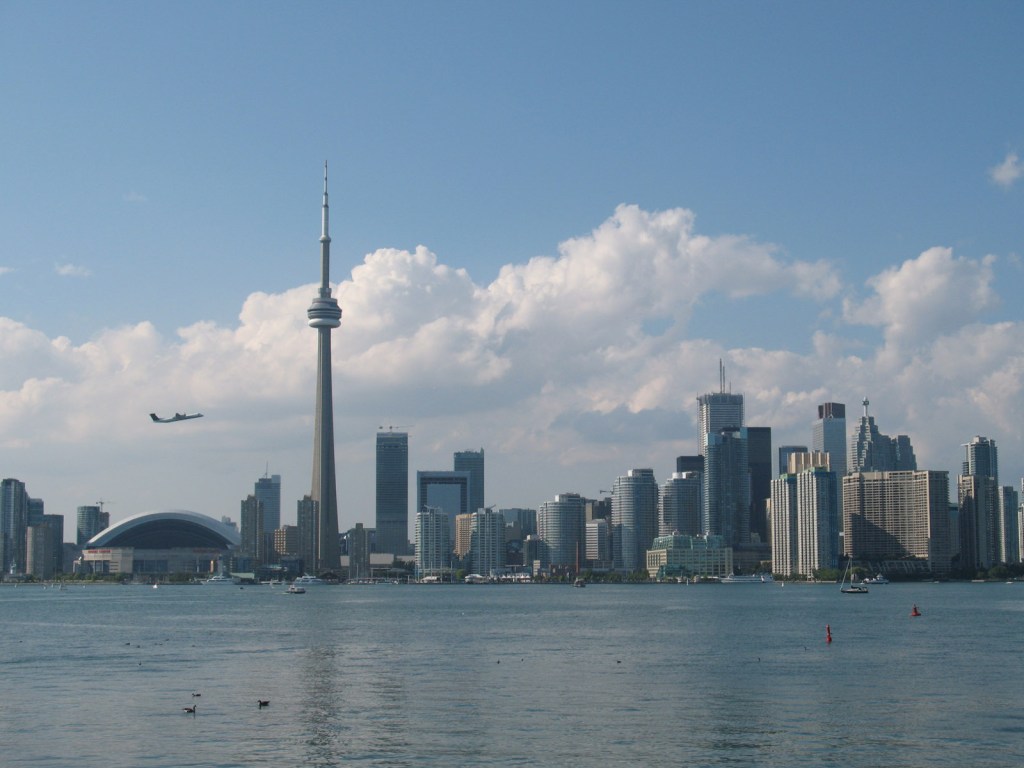 Another shot of the city skyline from Centre Island, while waiting for the ferry back into town. A flight from Billy Bishop Toronto City Airport has just taken off.