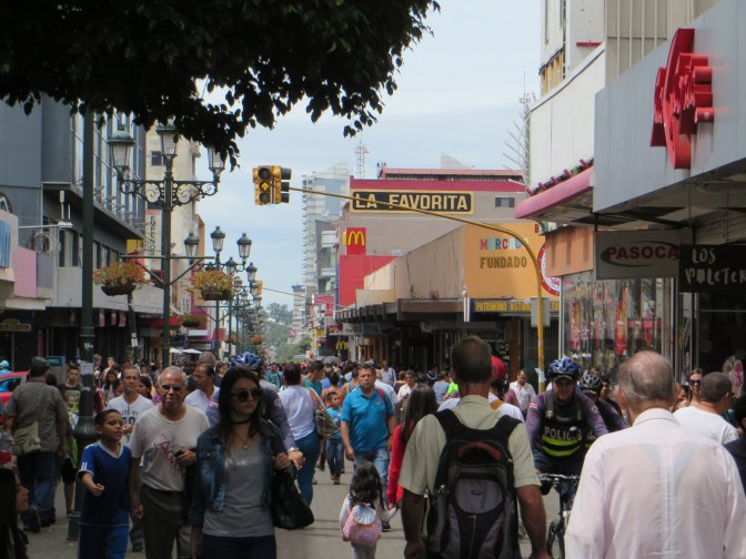 Avenida Central is the pedestrianised axis of the city, running east to west with parallel avenues being numbered oddly to the north, and evenly to the south. Although this sounds simple, it caused me significant confusion when first trying to navigate around the city, without it having been explained.