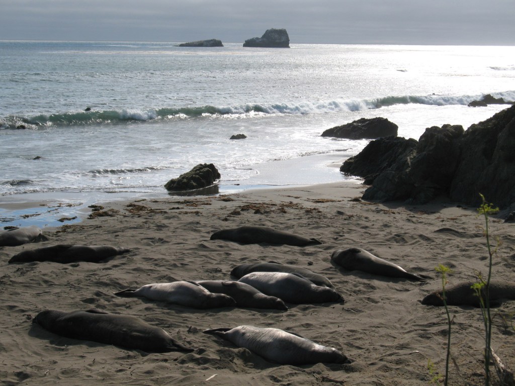Around San Simeon there is a colony of elephant seals, which bask on the sands in full view of spectators on the wooden walkways around the beach. These are mighty beasts weighing easily over two tonnes, they make a lot of noise and can move pretty quickly when they feel the need!