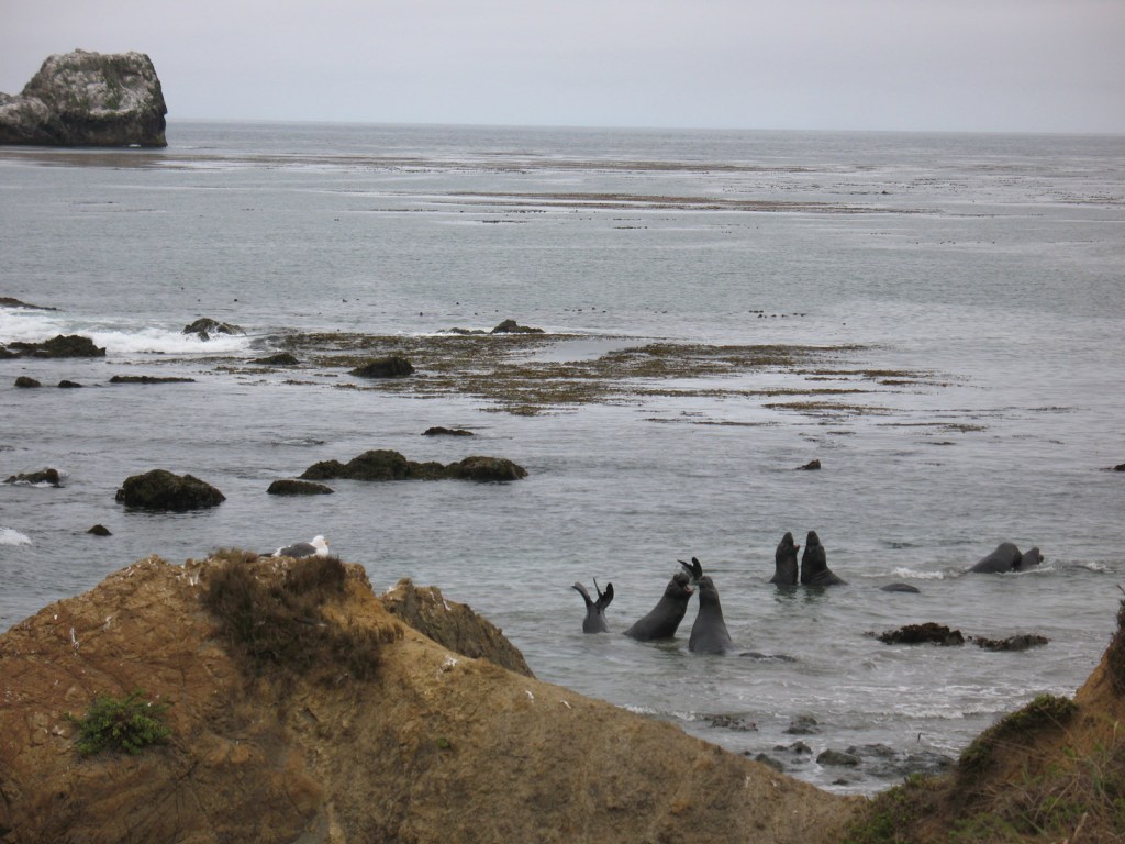The following day the elephant seals were being a bit more active, tearing chunks out of each other in pitched battles at sea.