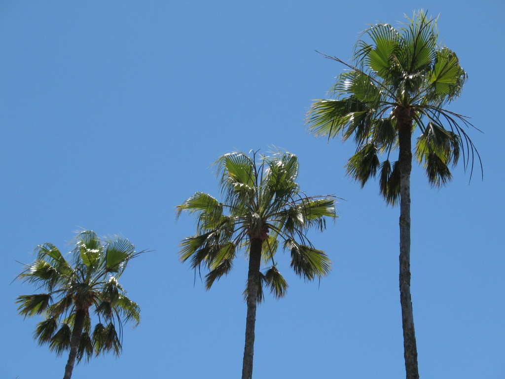 A closing shot of palm trees swaying in the breeze against the azure Californian sky.