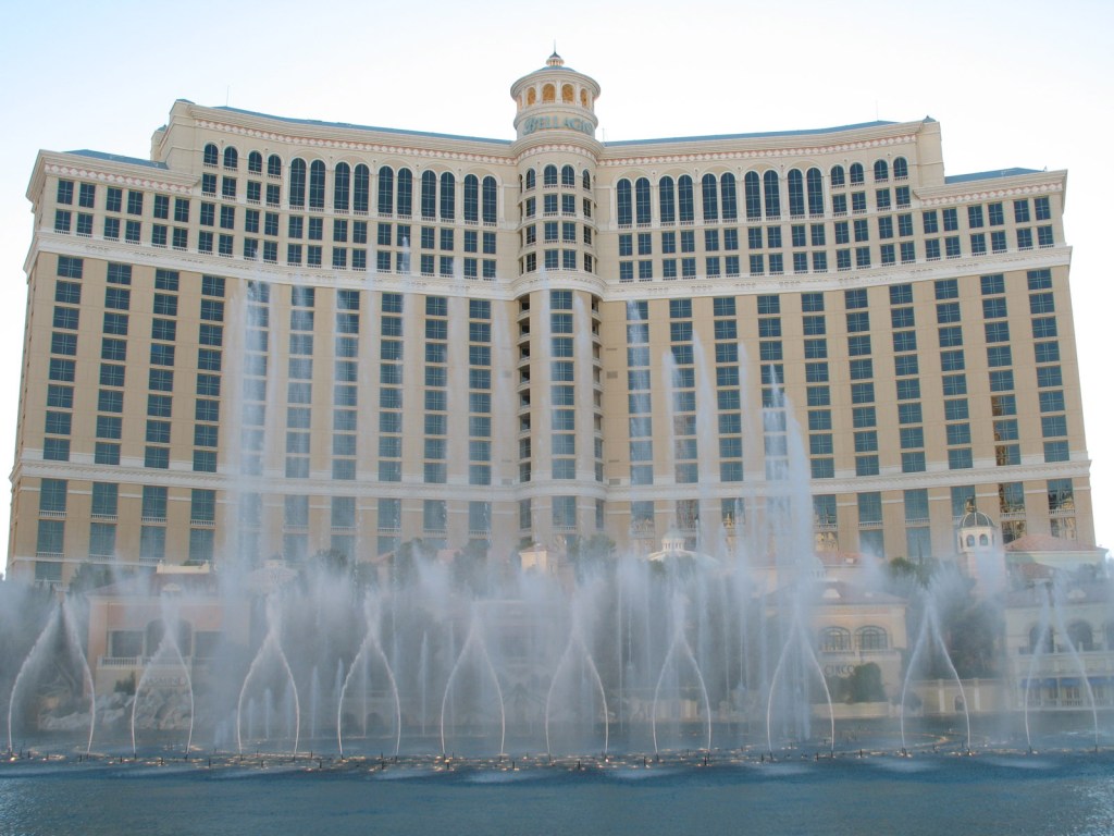 At one point in time, of the ten largest hotels in the world, all ten were in Las Vegas. South Las Vegas Boulevard, otherwise known as “The Strip”, is lined with mega resort hotels, one of the fanciest of which is the Bellagio. The dancing fountains outside the Bellagio wow the crowds to music on the hour, and their installers went on to even greater heights in Dubai.