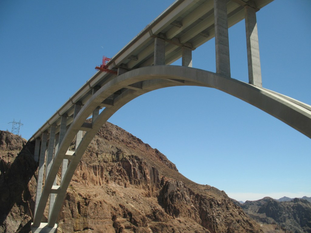Almost as impressive as the Hoover Dam itself is the bypass bridge which at the time was very nearly complete. Officially known as the Mike O’Callaghan – Pat Tillman Memorial Bridge it spans 320 metres across the Colorado river, at a height of 270 metres.