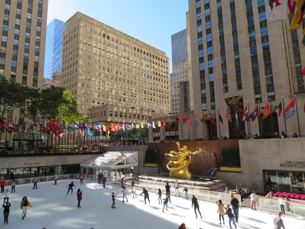 The ice rink at Rockefeller Center had recently got going for the winter season, although it was still t-shirt weather in the sunshine. The golden statue of Prometheus watches over the skaters.