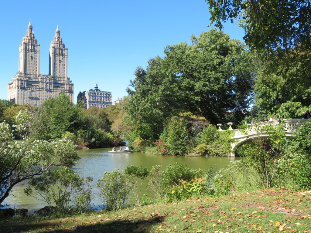 Boating on a lake in Central Park by Bow Bridge: we stopped at this picture perfect spot while cycling a circuit of the whole park. The twin towers are The San Remo, 1930 Central Park West apartment building with many famous residents.