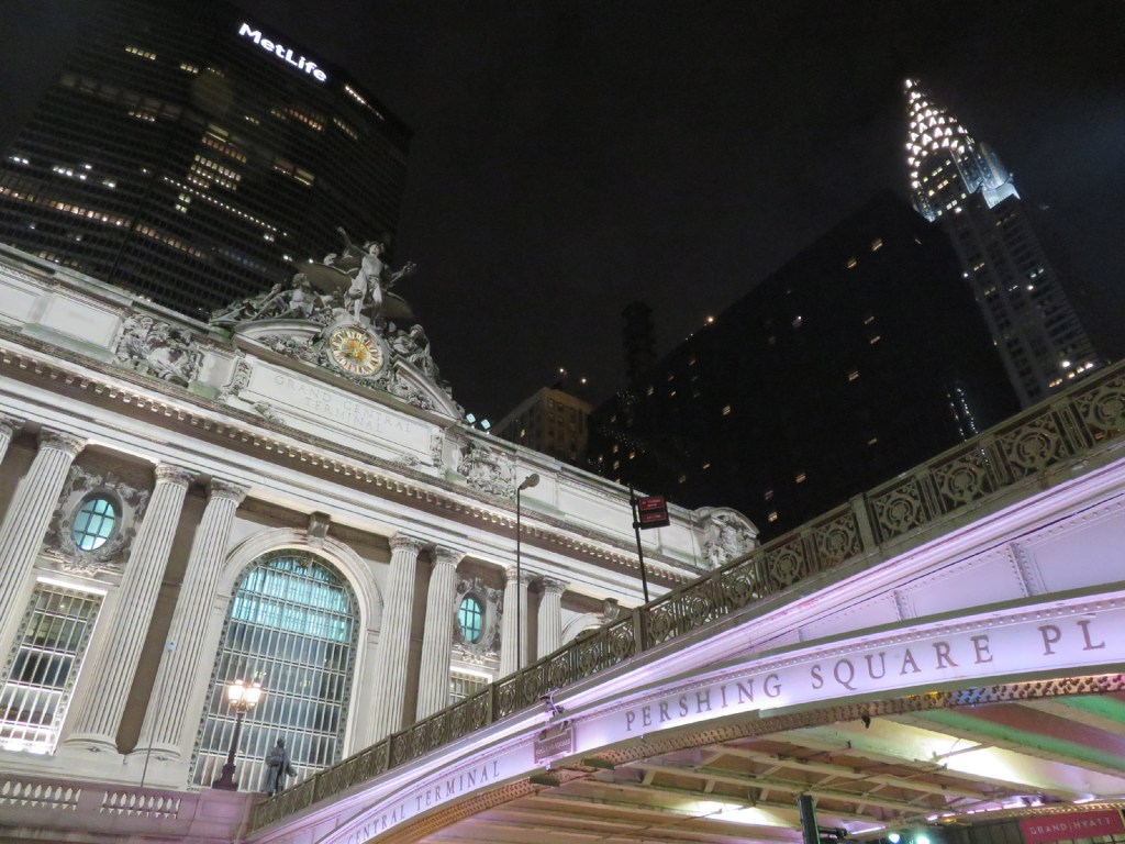 Exterior of Grand Central at night, with the MetLife and Chrysler buildings looming overhead. I took this as we left The Campbell, an opulent cocktail bar inside the station with cool live jazz.