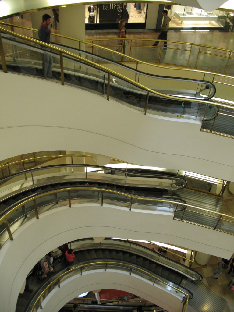 In the heart of the commercial shopping district on Market Street lies the Westfield Mall San Francisco centre, which has spiral escalators. Ain’t never seen that before…