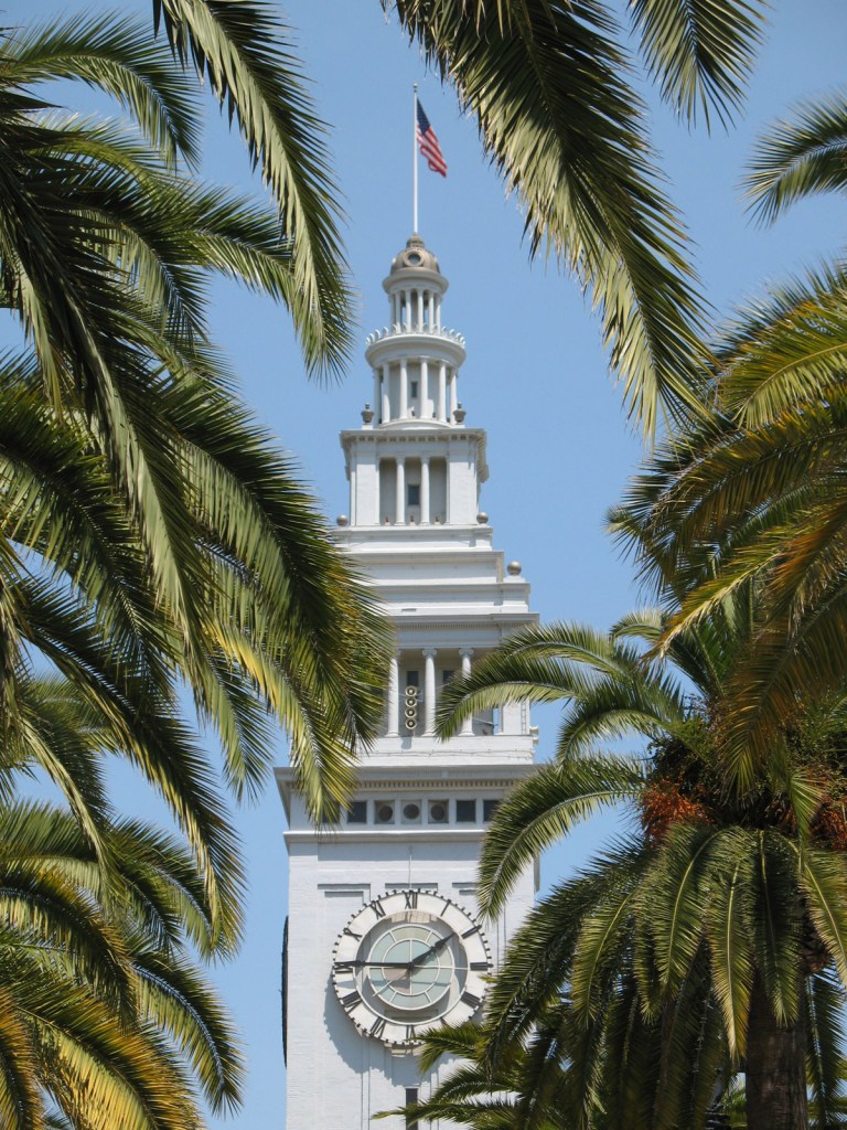 Clock tower at The Embarcadero Building, which the old sea port for San Francisco. The building was only redeveloped in the 1990s, having been previously barricaded from downtown by the double-decked Embarcadero Freeway, which famously collapsed during the 1989 Loma Prieta earthquake.
