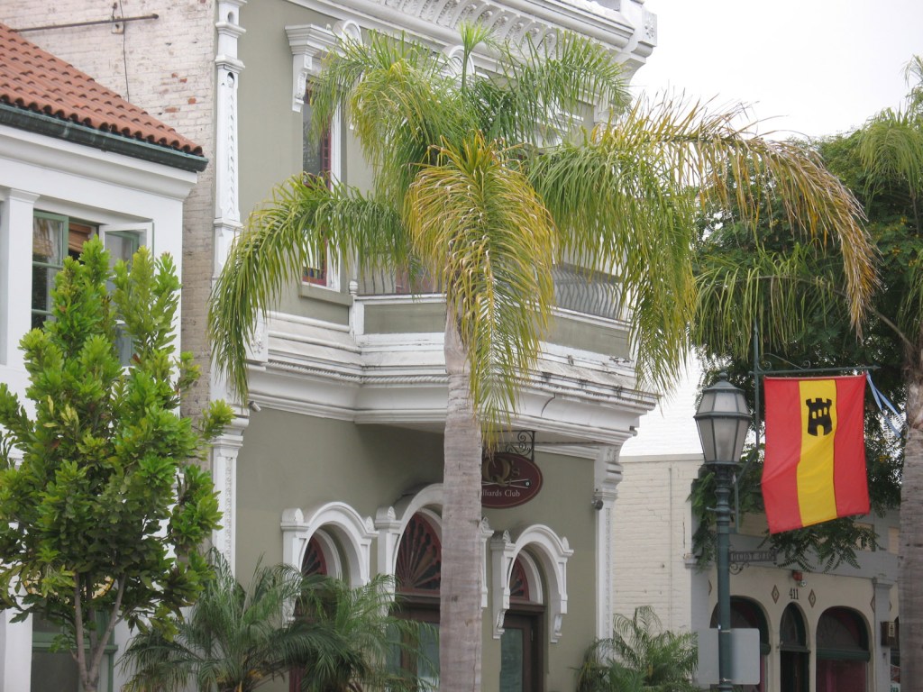 Flag with Spanish colours hanging under the county courthouse. However, I can’t figure out definitively what this flag is for, as it’s not the official flag of Santa Barbara County. Maybe an alternative?
