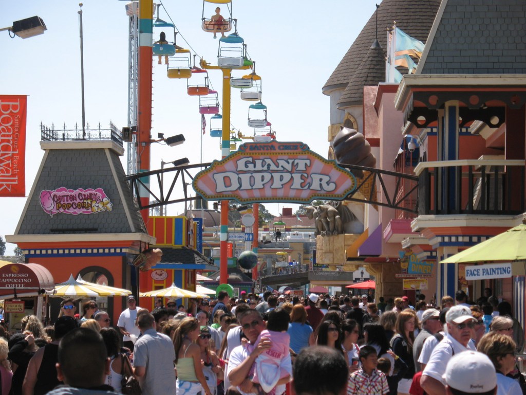 The Santa Cruz Beach Boardwalk is a full scale seaside theme park, and it’s all very Blackpool Pleasure Beach, but without the casinos. It was opened in 1907 and proves enduringly popular.
