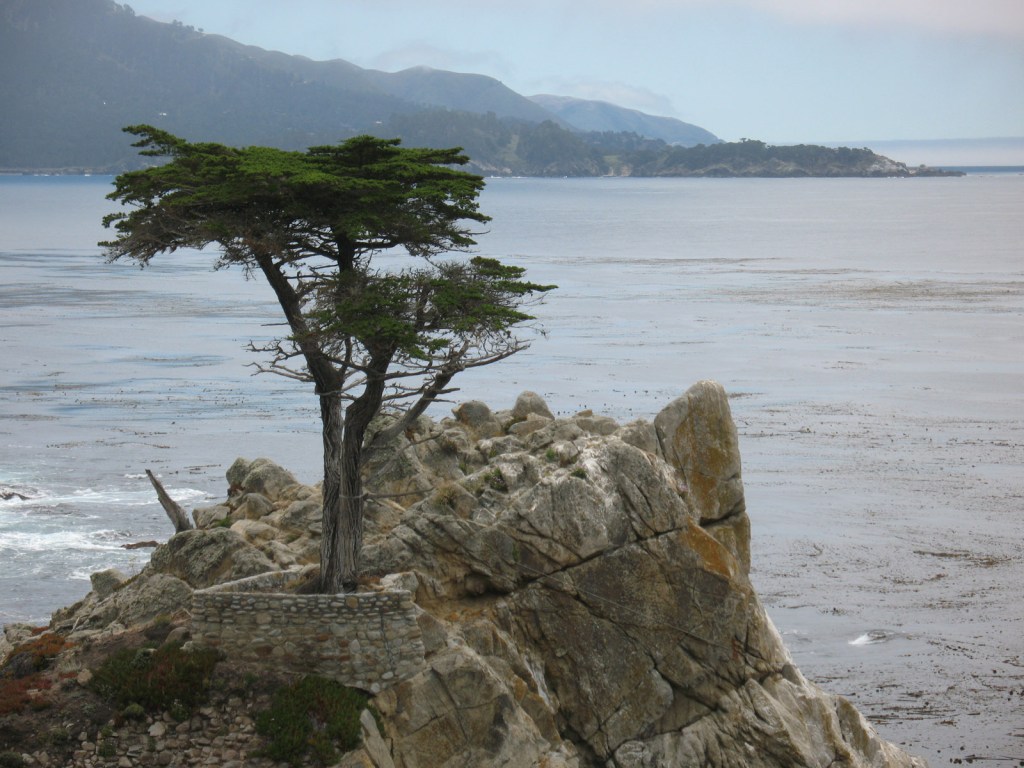 The Lone Cypress towards the southern end of 17 Mile Drive. This tree is a symbol of Pebble Beach.