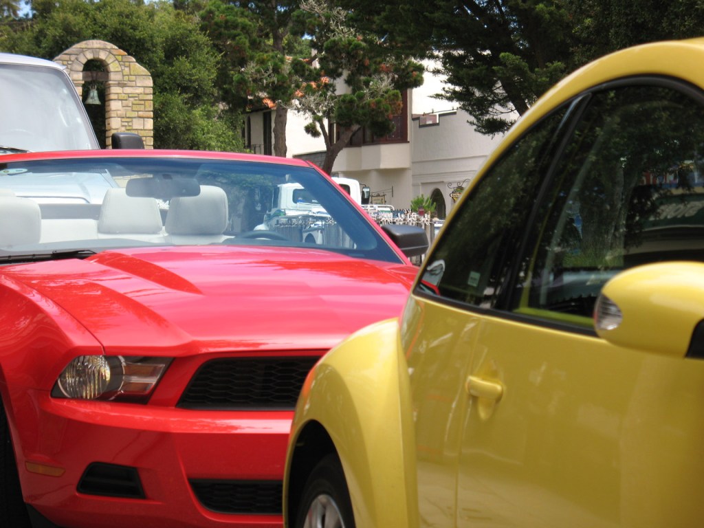 These colourful cars were spotted on Ocean Avenue by the bell arch in Carmel as we wandered around.