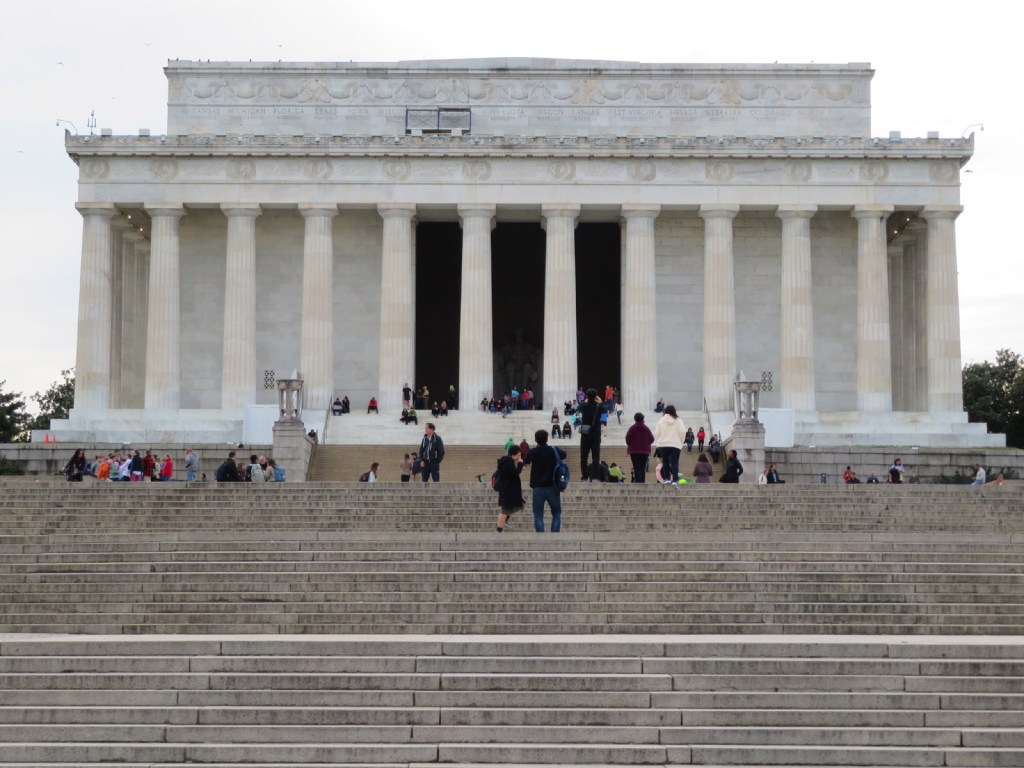 The statue is indeed large but takes on a more human scale once within the memorial. Two of his most famous speeches are carved into the walls including the Gettysburg Address, and there is speculation that his hand positions are deliberate sign language for “A” and “L”.