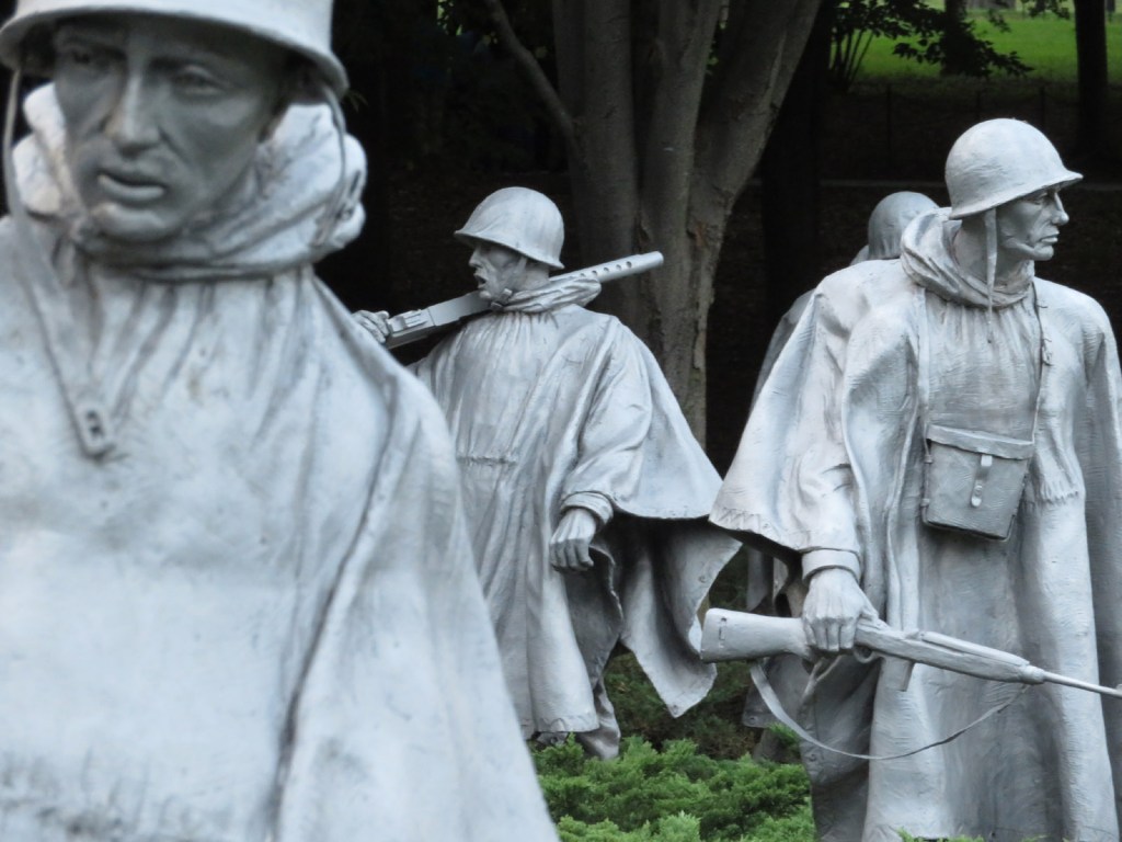 Detail of the poncho-clad soldiers in the Korean War Veterans Memorial, known as The Column. A more recent addition to the National Mall, it was dedicated in 1995, over 40 years after the war ended in 1953.