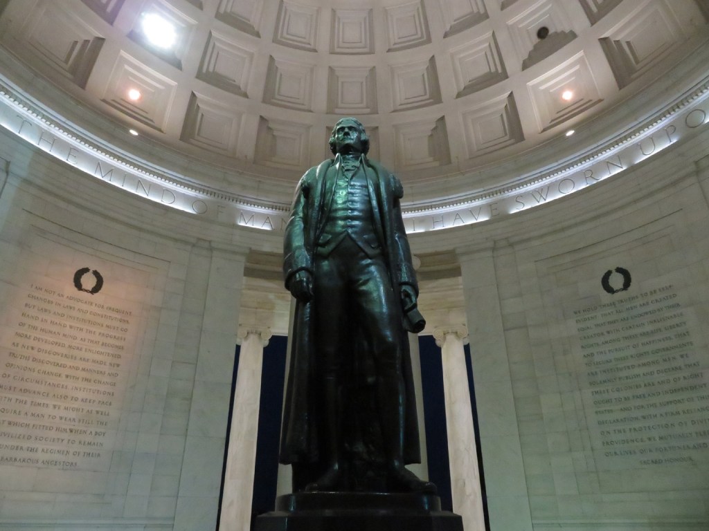 Besides being instrumental in the American Revolution, Jefferson was a forward thinker of his day particularly regarding individual rights and freedoms. Quotes from several of his speeches are carved in the walls, including (to paraphrase) that all men are created equal, and endowed with the inalienable rights of life, liberty and the pursuit of happiness.