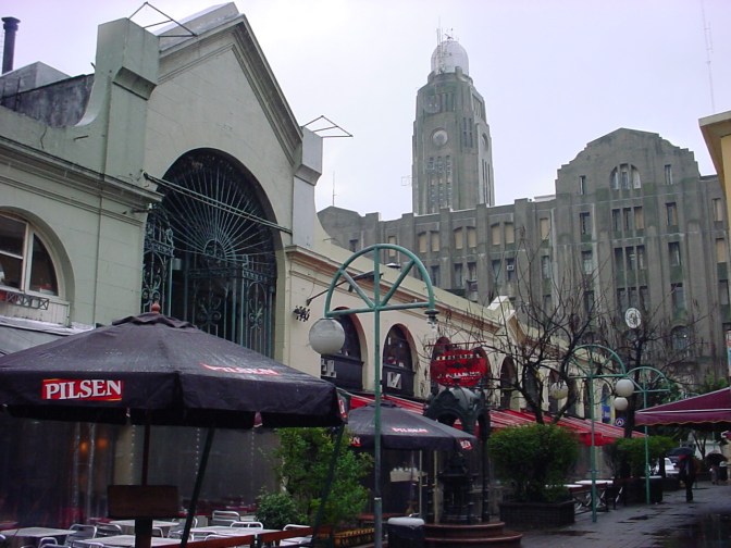 The Port Market area was not particularly busy on a Wednesday morning in winter, but a very nice restaurant here did us an excellent steak and cheese. The art deco building and tower behind are the offices of Uruguayan navy command.