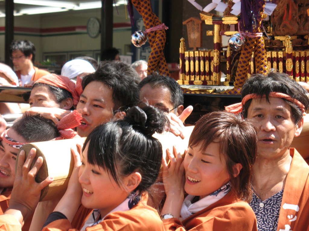 While we were still wandering the streets of Akasaka searching for our capsule hotel, we chanced upon a series of parade type celebrations. Everyone was in good spirits as they carried some sort of box down the street, and interestingly, none of them were wearing shoes.