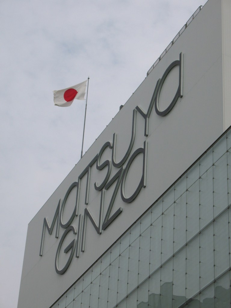 Matsuya Ginza department store down in Ginza district. I like the stark glass and white with the rising sun in this image.