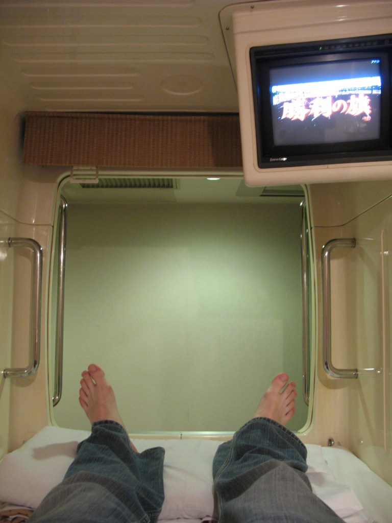 Back in our hotel, and this was my room, pretty neat?! There were 300 capsules in this tiny hotel, communal showers on the top floor and no women allowed. It had clearly been very cutting edge in the 1980s but was showing signs of age now. I felt like I was offshore.