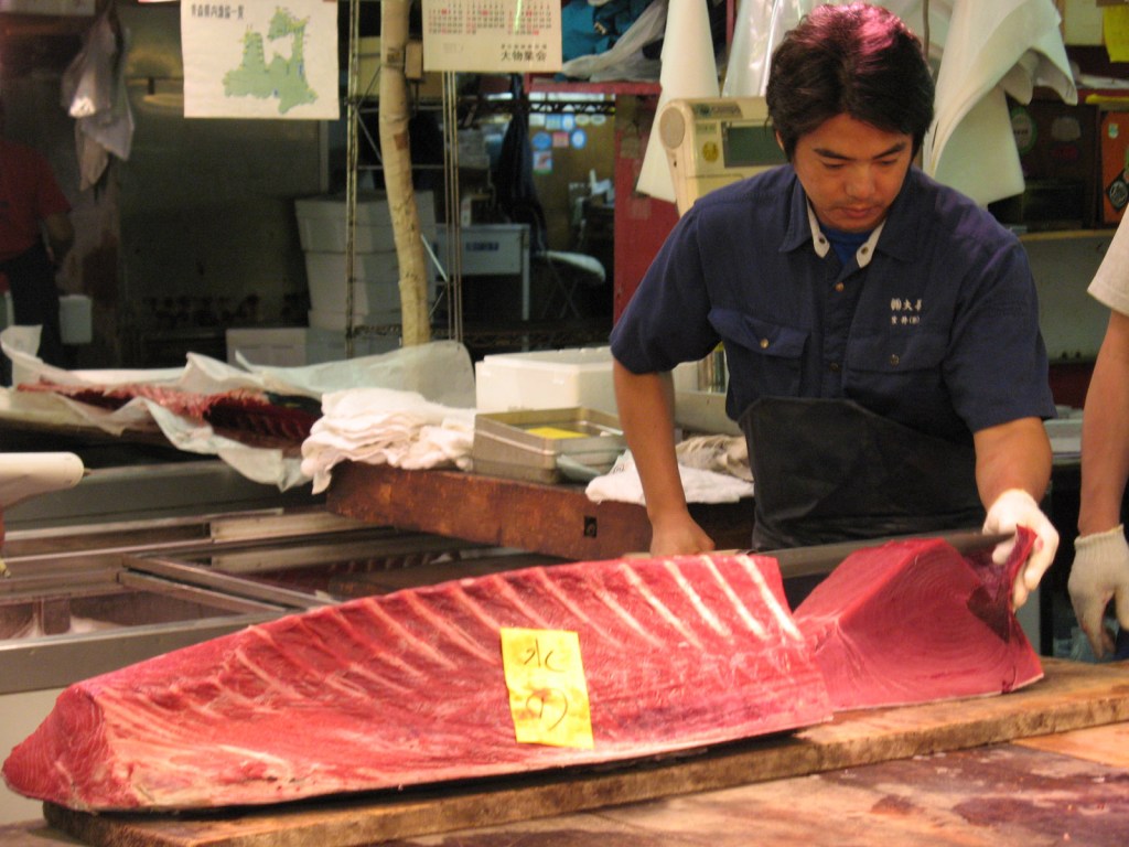 The Tokyo fish market Tsukiji is listed as one of the must-see attractions in town, so we headed down early one morning to catch the action. Rather than getting out of bed early, we just sauntered along after a night on the razzle in Roppongi. This obliging chap cut us a few slices of the freshest sashimi you could ever have, and even found us some soy sauce for dipping. Beats a kebab any day.