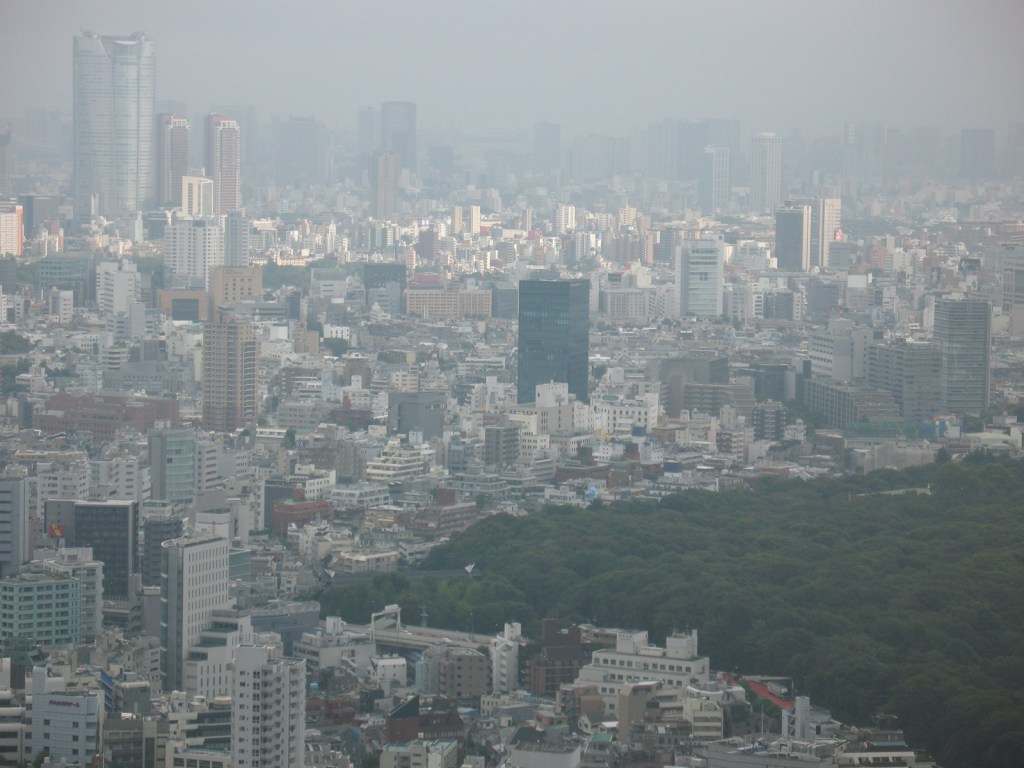 Tokyo as seen from the top of the City Hall. The large green space is the Emperor’s palace, and the tower at the top left is Roppongi Hills.