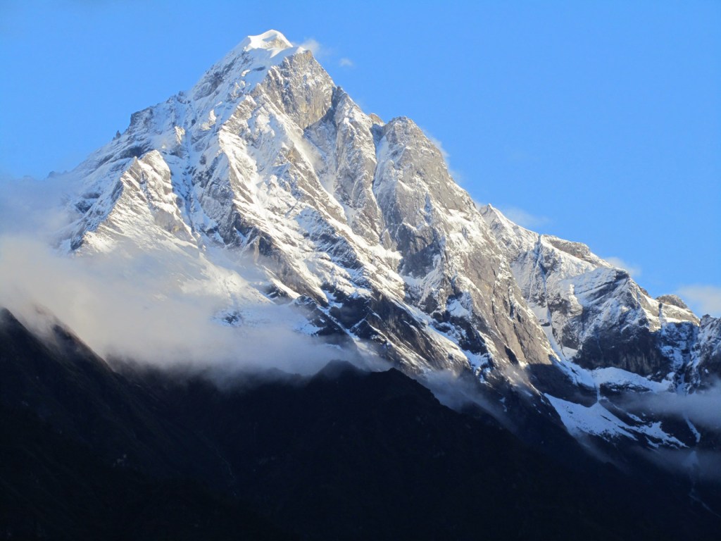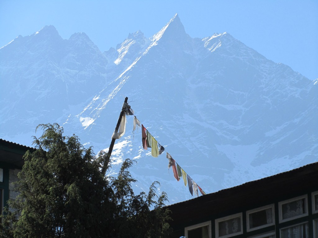 In the morning sun shortly after landing the high peaks looked beautiful. These peaks are to the south east of Lukla, but I can’t figure out their name.