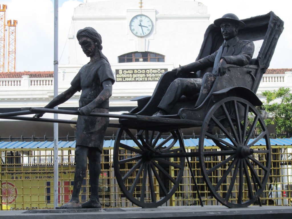 The rickshaw days of Colombo have long since passed, but are immortalised in bronze outside the Grand Oriental Hotel, across from the Sri Lanka Ports Authority building.