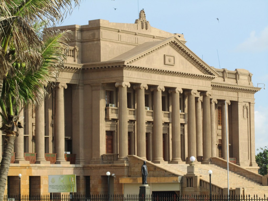 Sri Lanka’s grand Old Parliament Building faces out over the sea. The sky behind has unfortunately since been blighted with high rise modern hotels. It was built in 1930 but the parliament moved out in the 1980s, and it now houses the Presidential Secretariat.