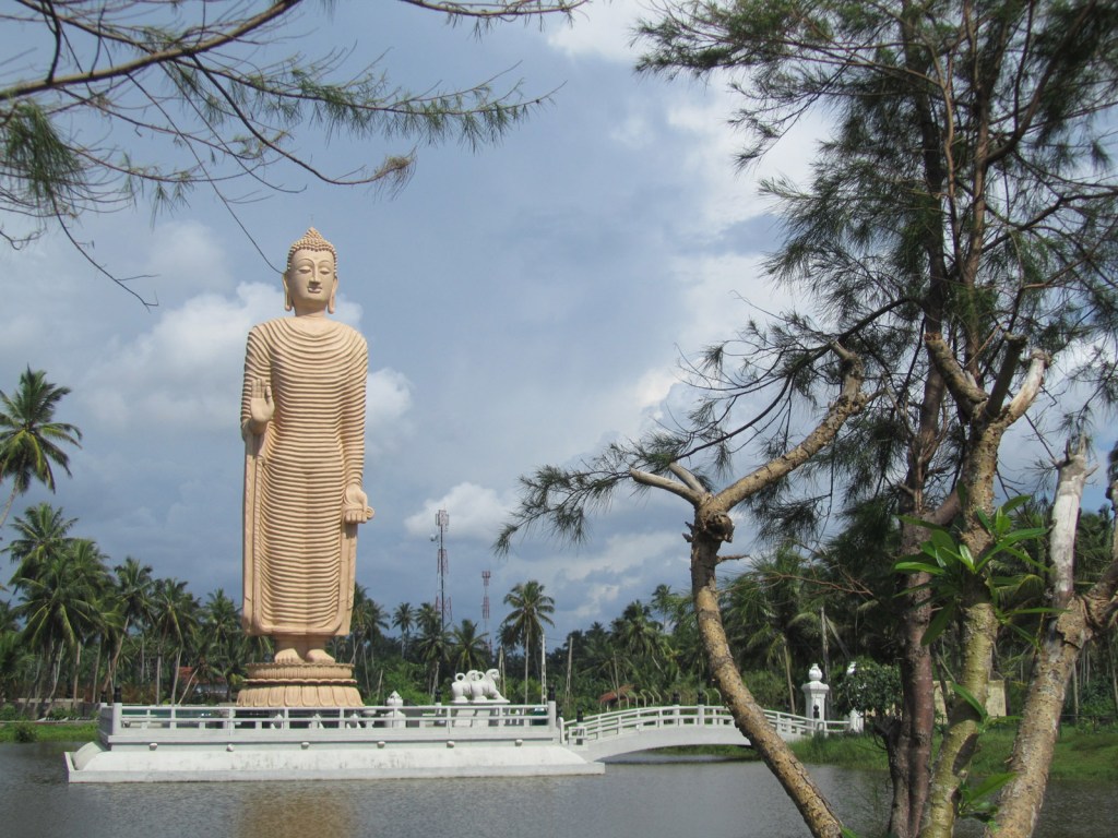 Also as a memorial to the disaster, the Buddha statue at Tsunami Honganji Viharaya stands 30 metres tall over a nearby lake. Completed in 2006, the statue was funded by Japan and is a scale replica of one of the Buddhas of Bamiyan, which were deliberately destroyed by the Taliban in Afghanistan in 2001.