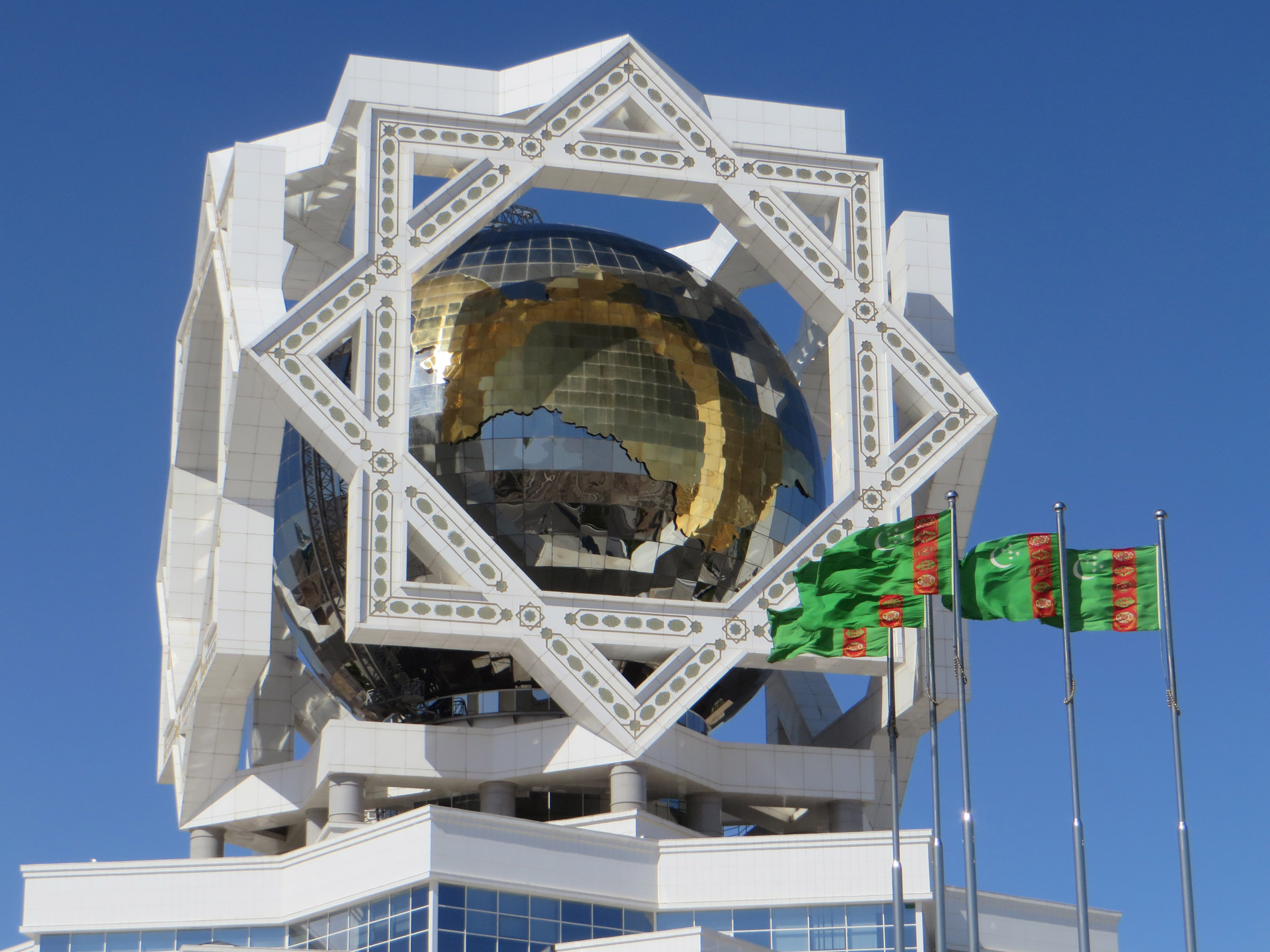 We visited Turkmenistan in late summer 2016 as part of an organised tour with Koryo Group, who organised the visas, accommodation, local guides and all on-the-ground activities. Flying from Edinburgh via Istanbul with Turkish Airlines, we were mostly based in the capital Ashgabat, split by a night up at the Darwaza gas crater under canvas, before striking out across the Karakum Desert to the Caspian via Balkanabat and Yangykala Canyon, and spending a night at the coastal resort of Awaza near Turkmenbashi. An internal flight on Turkmenistan Airlines took us back to Ashgabat for another couple of nights, before returning home. It was a spectacular trip with plenty to do and see, and rewriting these pages in 2024 has reminded me what an incredibly other-worldly place it is.