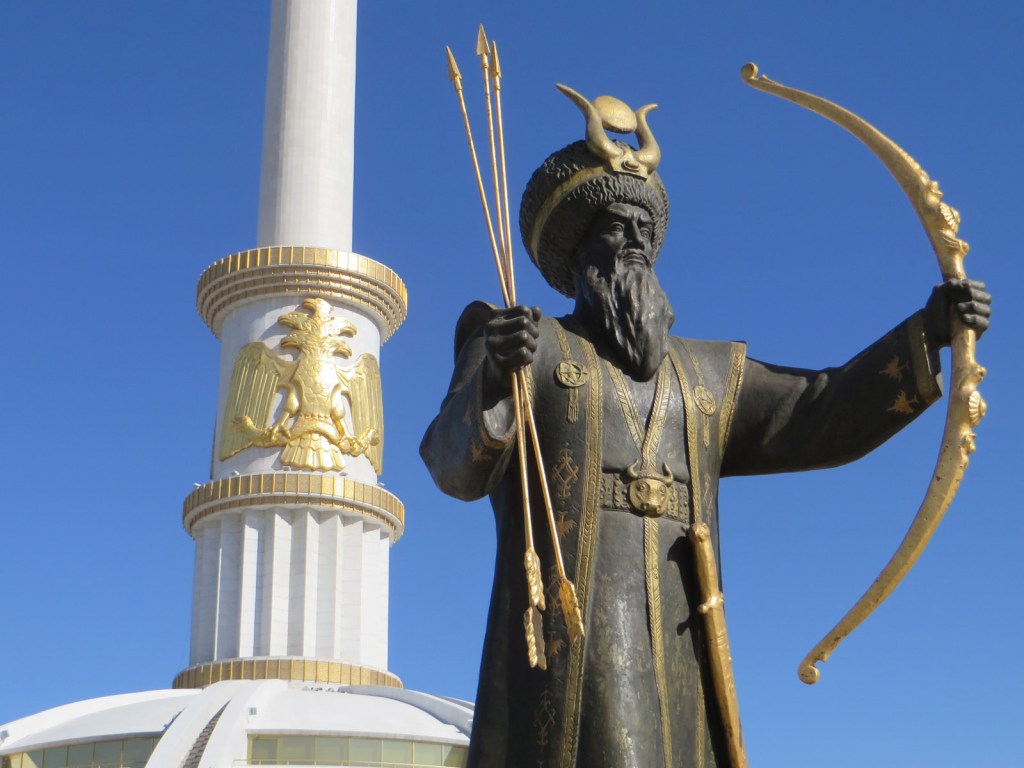 Ashgabat has no shortage of monuments to gawp at, but my favourite was probably the Independence Monument with its multitude of traditionally-armed statues guarding it. The monument commemorates Turkmenistan’s independence from the Soviet Union in 1991, a union the country did not enter willingly. This picture looks from the monument towards the State Cultural Centre.
