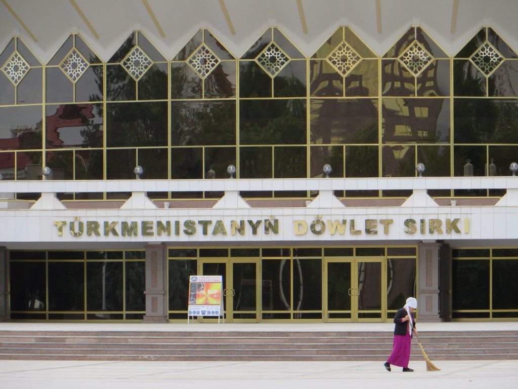 The Turkmenistan State Circus has its home right across from our hotel, and is kept clean by sweeping babushkas day and night. We visited on our last night with tickets for forty pence, the cheapness belying the quality of the show, which was thoroughly entertaining.