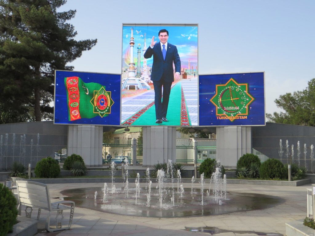 President Berdymukhamedov appears in perfect photographic form throughout the city, whether painted or digitally recreated such as on this electronic billboard.