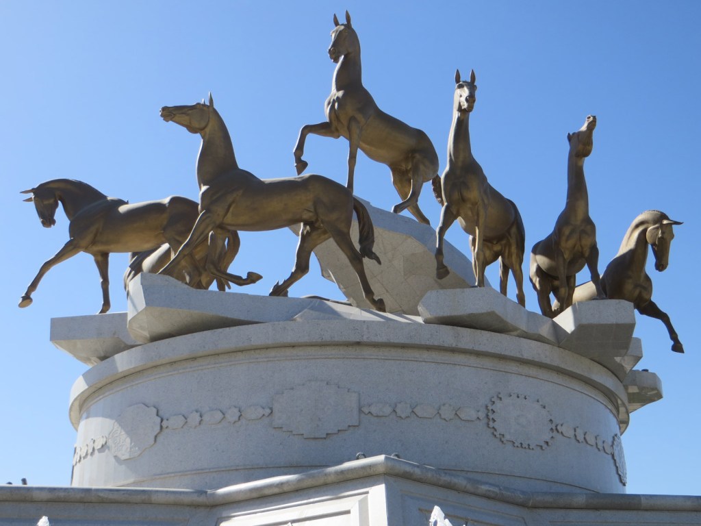 Reverence of horses in Turkmenistan is such that they even have their own monument, almost like they are bursting out of an iced cake.