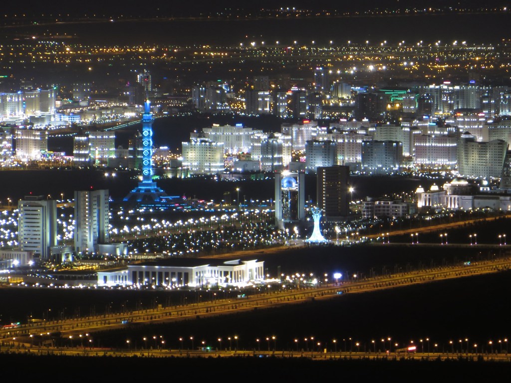 Ashgabat doesn’t hold back when it comes to neon, with much of the city lit by night in swathes of colour to rival Hong Kong or Las Vegas. This is the view from the TV Tower across the city.